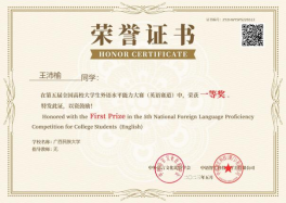 英语专业吴萍同学获第30届韩素音国际翻译大赛英译汉二等奖